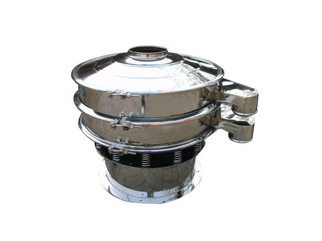 旋振篩(圓形振動(dòng)篩)由立式振動(dòng)電機(jī)作激振源,因?yàn)槠渖舷露酥劐N安裝在發(fā)動(dòng)軸兩側(cè),使電機(jī)的旋轉(zhuǎn)運(yùn)動(dòng)轉(zhuǎn)變?yōu)榇怪薄⑺健A斜的三次元運(yùn)動(dòng)。  旋振篩產(chǎn)品特點(diǎn):  設(shè)計(jì)精巧,耐用,適合任何粉類以及粘性液體的篩分。  操作簡(jiǎn)單,換網(wǎng)方便,易于清洗。  篩網(wǎng)無阻塞,粉末無飛揚(yáng)。  雜質(zhì)以及粗料自動(dòng)排出,并且可以與給料設(shè)備、輸送設(shè)備配套使用,處理量大,生產(chǎn)效率高。  尺寸小,節(jié)省空間,易于移動(dòng)。  易于養(yǎng)護(hù),可單層或多層使用。  篩網(wǎng)設(shè)計(jì)合理耐用,換網(wǎng)只需3-5分鐘。  篩網(wǎng)可達(dá)5層,篩分出6種不同顆粒大小的物料
